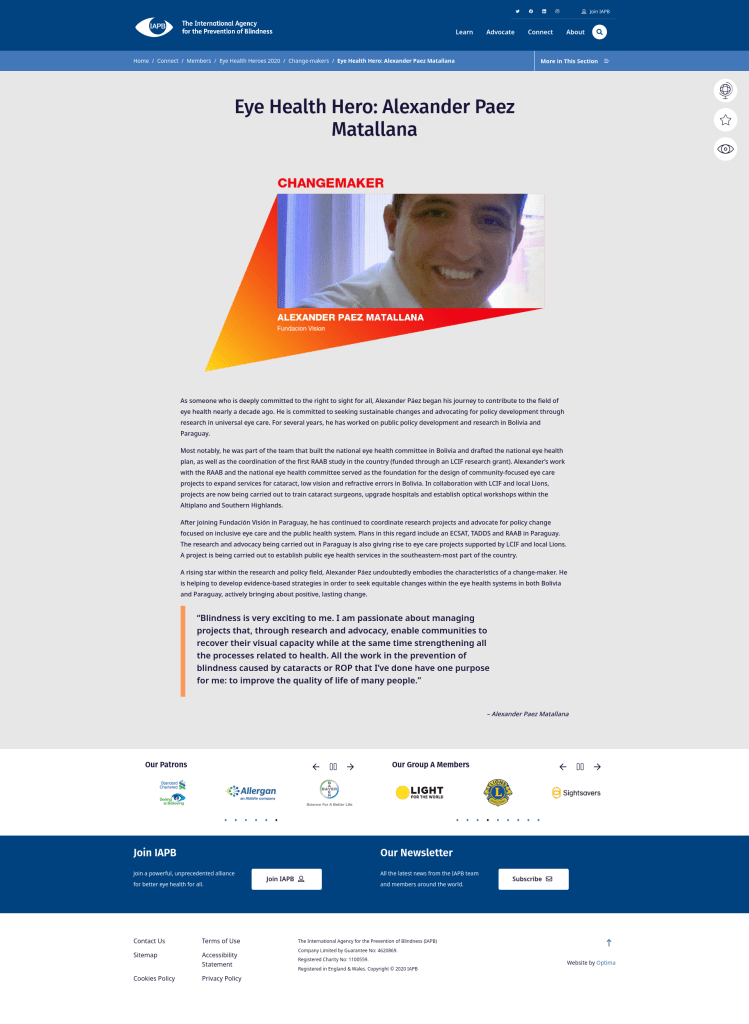 ¡Es un absoluto honor ser un Héroe de la Salud Ocular por parte de la IAPB 2020!