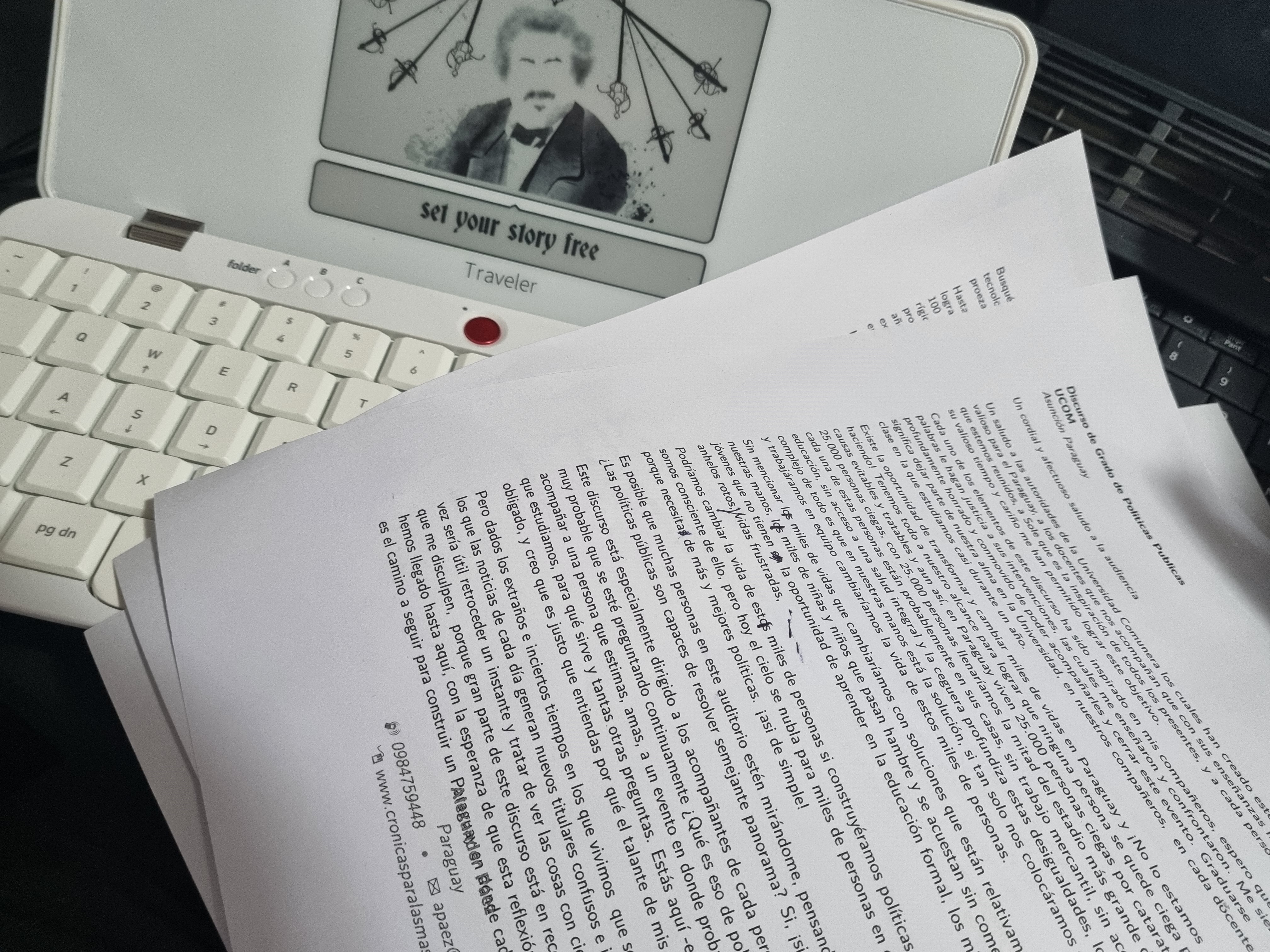 Así, pues, mi mensaje es sencillo: seguir tejiendo, seguir creyendo, seguir avanzando, seguir construyendo, seguir alzando la voz, seguir escribiendo. Cada persona tiene la oportunidad de rehacer el mundo. Es un buen momento para hacerlo y tejer el Paraguay que tanto soñamos.