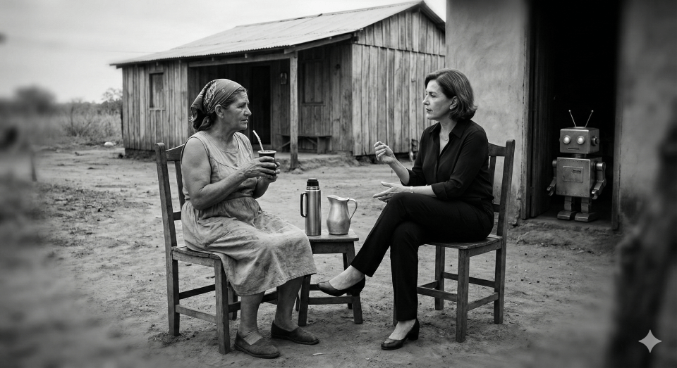 Este cuento explora ese territorio difuso donde habitan los desposeídos. Donde Petrona, campesina paraguaya que enterró a su hijo envenenado por fumigaciones y a su hermano asesinado por defender la tierra, conversa con una madre colombiana que carga sus propias cicatrices. Dos violencias distintas, una misma genealogía del desgarro.